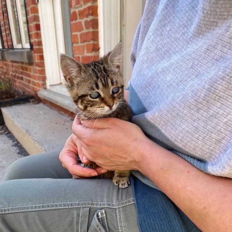 Entre los gatos rescatados estaba Lizzie, una mamá gata muy delgada, casi sin fuerzas, que acababa de tener seis pequeños. Apenas tenía leche suficiente para alimentarlos. Y entre todos ellos, había una gatita diminuta de color crema que parecía especialmente frágil.