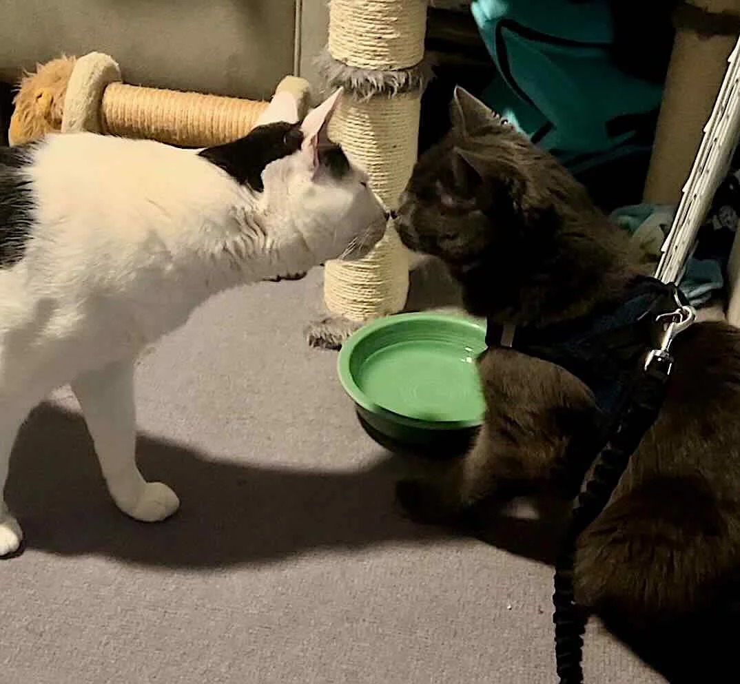 Abba, con su carácter más reservado, ayudó a Flannel a moverse por su nuevo mundo con paciencia. Y Flannel, con su energía desbordante, trajo alegría y movimiento a la casa.