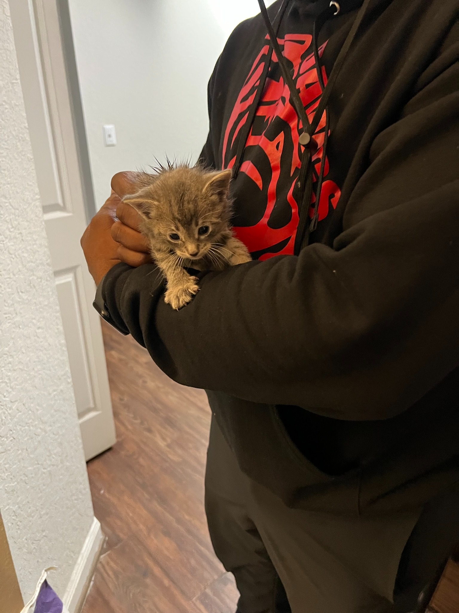 Después de rescatarlo, el agente tomó una decisión que convirtió el caso en algo mucho más personal: adoptó al gatito. Y no solo le dio un hogar. También le dio un nombre con aire de familia: Tabby Rashard Jones.